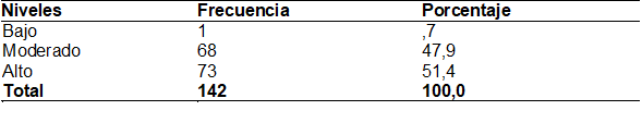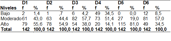 En la Tabla 1, se aprecia que predomina el nivel alto de habilidades de poder en los estudiantes de la EESPPI con 51,4%; seguido del nivel moderado con 47,9% y finalmente el nivel bajo se ubica con 0,7%. En tal sentido, se puede interpretar que dichos discentes exhiben un alto nivel de complementariedad entre las habilidades duras y las habilidades blandas, demostradas mediante la combinación de habilidades comunicativas, empatía, resiliencia, procesos perceptivos y cognitivos complejos, entre otros necesarios para adaptase a las circunstancias inesperadas y que conlleven a la construcción de equipos colaborativos efectivos en atención a las demandas competitivas del mercado laboral vinculado a la emergente industria 4.0.