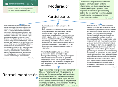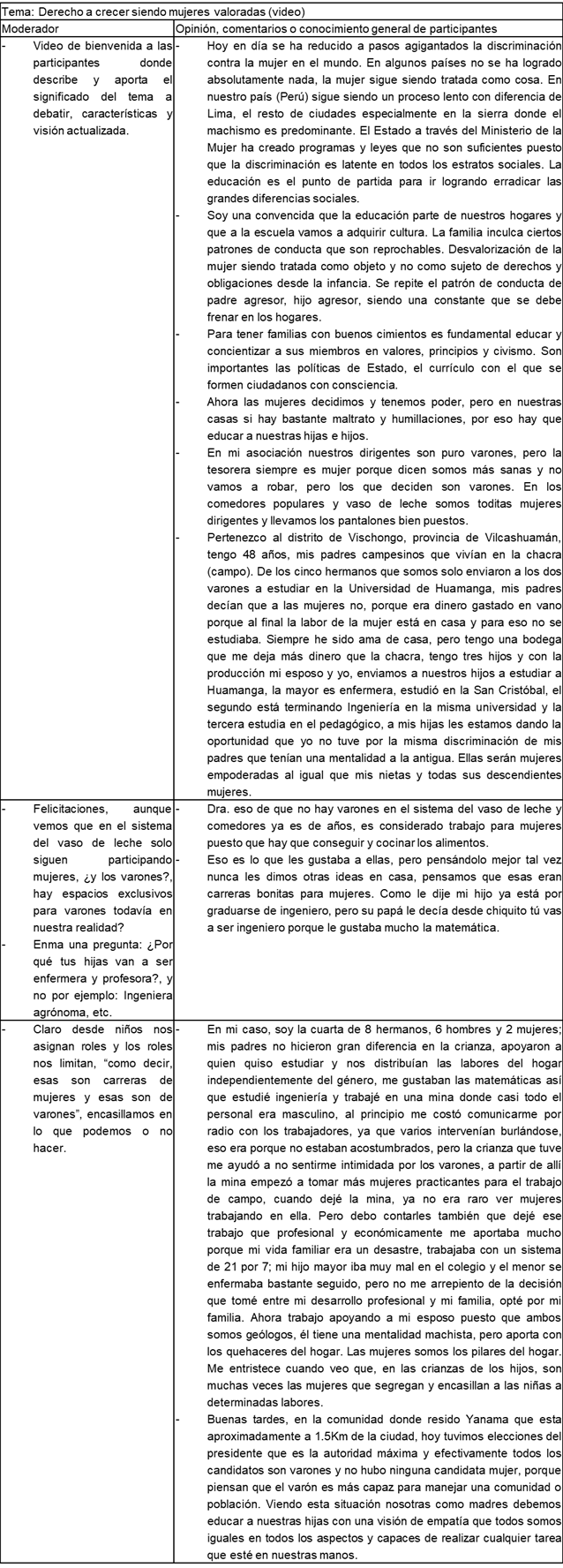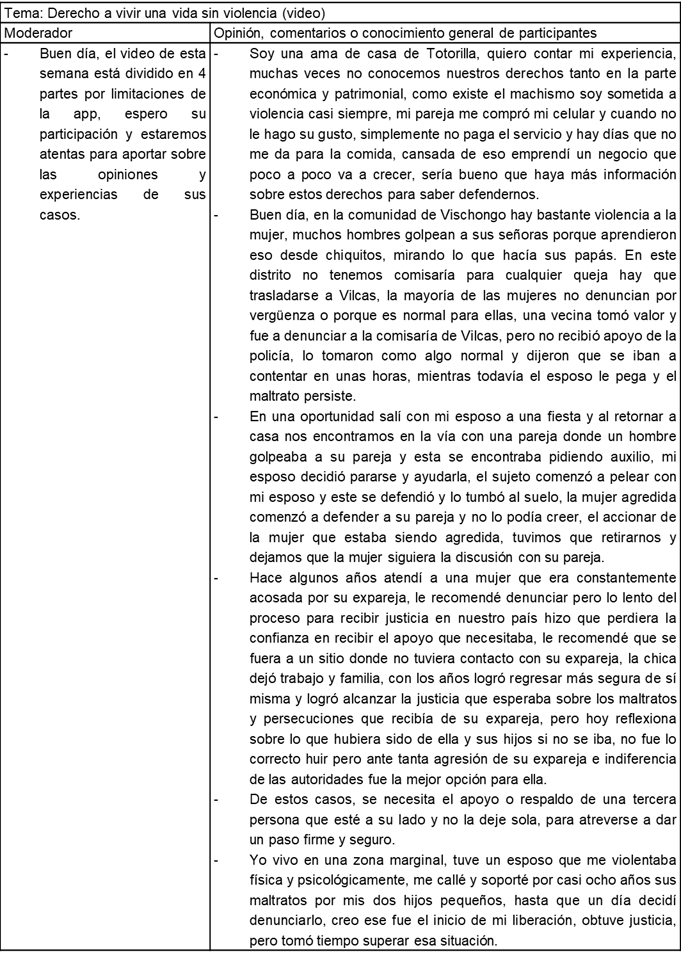 A continuación, se transcribe el extracto de lo expresado por las participantes en el foro vía WhatsApp de cada uno de los temas en discusión.