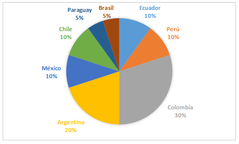 La Figura 2, se muestra el porcentaje de los países en América Latina con mayor publicación sobre las PP, para ello se realizó la búsqueda bibliográfica científica en diferentes bases de datos, posteriormente, usando los criterios de inclusión y exclusión, selección, elegibilidad, valoración y análisis, siguiendo los procedimientos y recomendaciones de la Declaración PRISMA, se obtuvieron un total de n=20 artículos (100%), dentro de los primeros lugares tenemos a Colombia n=6 (30%), Argentina n=4 (20%), seguido por Ecuador n=2 (10%), Perú n=2 (10%), México n=2 (10%) y finalmente Paraguay n=1 (5%) y Brasil n=1 (5%). Estos números reflejan la preocupación de los investigadores por el tema.
