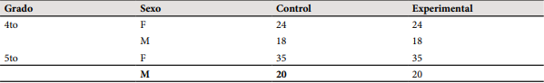 La muestra estuvo conformada por 194 estudiantes de educación secundaria, seleccionados mediante un muestreo aleatorio simple. A continuación, se presenta la distribución de la muestra según grado, sexo y grupo asignado (control o experimental):