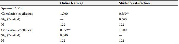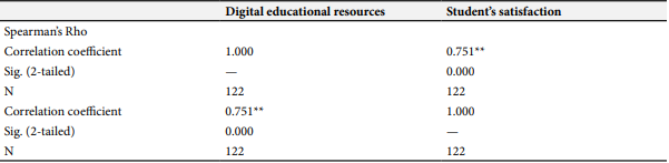 Table 5. Correlation and significance between digital educational resources and student satisfaction.