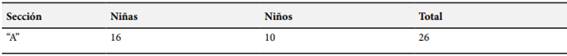 La investigación tuvo un enfoque cuantitativo, de nivel descriptivo simple y diseño longitudinal, ya que la medición se realizó en varios momentos. La muestra estuvo conformada por 26 preescolares, de los cuales 16 fueron niñas y 10 niños, todos de 5 años de edad, matriculados en el año 2023 en la sección “A” de la Institución Educativa Pública Inicial N.º 424 “Jesús María”, ubicada en la región Ucayali, Perú. La selección de la muestra se llevó a cabo mediante un muestreo intencional y por conveniencia, considerando criterios de accesibilidad como se evidencia en la Tabla 1.