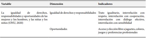 Durante la fase de recolección de datos, se emplearon las técnicas de observación y encuesta. Se utilizó una ficha de observación diseñada para recopilar información relacionada con la dimensión de igualdad de derechos y responsabilidades, y un cuestionario aplicado de forma presencial, destinado a evaluar la dimensión de oportunidades. Tanto la variable como sus dimensiones e indicadores se encuentran representados de forma sintética en la matriz de operacionalización representada en la Tabla 2.
