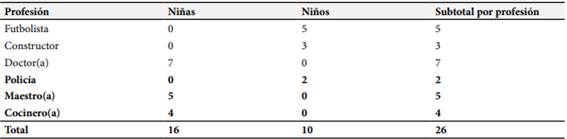 En contraste, el 50% de los niños expresó querer ser futbolistas, seguido de constructores con un 30% y policías con un 20%, profesiones que suelen asociarse con fuerza física, acción o estatus. Este patrón muestra cómo los estereotipos de género aún influyen significativamente en las aspiraciones profesionales desde edades tempranas.