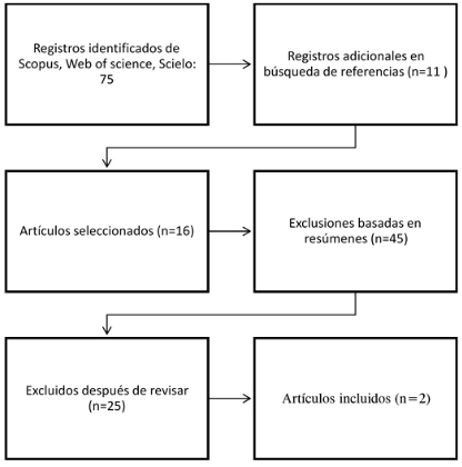 Finalmente, se elaboró un flujograma PRISMA que sintetizó las fases de identificación, selección, elegibilidad e inclusión de los artículos como se evidencia en la Figura 1, asegurando trazabilidad en la revisión realizada.