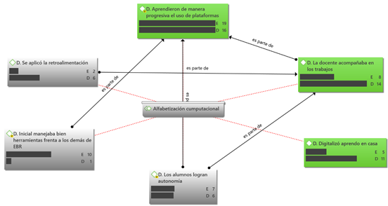Los hallazgos de esta investigación reafirman el papel central del docente en el proceso de alfabetización digital de los estudiantes, especialmente en el nivel de educación inicial. Se evidencia que, aunque los escolares pueden adquirir habilidades básicas para el uso de tecnologías como la inteligencia artificial, estas competencias no son suficientes por sí solas para garantizar la autonomía ni la construcción de una identidad digital. Esta influencia positiva también se ve reforzada por el compromiso de los padres, quienes no solo facilitan el cumplimiento de la programación académica y los logros de desempeño, sino que también modelan valores esenciales como la responsabilidad y la autodisciplina (Eisenlauer, 2020; Kucirkova y Mackey, 2020; Kumpulainen et al., 2020). En este contexto, el rol del maestro trasciende la mera instrucción técnica, ya que su percepción positiva de la virtualidad, su motivación para emplear herramientas tecnológicas y su dominio del pensamiento computacional generan un efecto multiplicador en el alumnado.