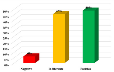 En la Figura 1, se aprecia que de los 216 estudiantes encuestados, el 6% tiene una percepción negativa acerca del uso de las TIC, 45% le es indiferente y el 49% tiene una percepción positiva, es decir que las herramientas digitales y estrategias que se están empleando para el propósito del aprendizaje son adecuadas para tal fin.
