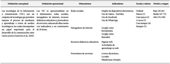 Tabla 1. Matriz de operacionalización