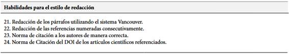 Tabla 2. Habilidades para el estilo de redacción