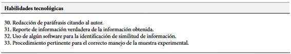 Tabla 3. Habilidades tecnológicas