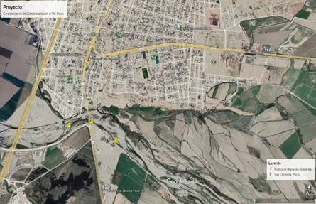 La técnica de recolección de datos: se realizó principalmente en la ribera del río Pisco, en el distrito de San Clemente, cuyas coordenadas UTM están detalladas en la Tabla 1. La ubicación fue seleccionada por su cercanía a posibles fuentes de contaminación, su variabilidad geográfica y su representatividad de las condiciones ambientales. Este punto de monitoreo es esencial para evaluar la calidad del agua y analizar el impacto de los vertimientos de aguas residuales domiciliarias en esta sección del río, Tabla 1.