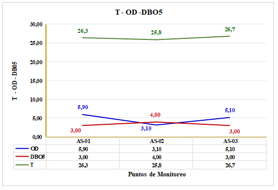 Cabe destacar que, la disminución del oxígeno disuelto, directamente relacionada con el aumento de la temperatura, limita la capacidad del río para sustentar la vida acuática y favorece la proliferación de organismos menos exigentes en términos de oxígeno, lo cual puede alterar la estructura y función de las comunidades biológicas. Además, los valores de DBO5, aunque relativamente constantes en este estudio, indican la presencia de materia orgánica biodegradable en el agua, lo que sugiere una carga contaminante adicional proveniente de las aguas residuales.