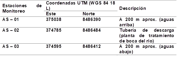 El punto de monitoreo seleccionado ofrece una visión clave para analizar la calidad del agua en la cuenca del río Pisco. A través de mediciones constantes, se recopila información relevante sobre las variaciones en los parámetros físico-químicos y biológicos que influyen en la salud del ecosistema acuático. Además, su ubicación estratégica facilita la identificación de posibles fuentes de contaminación y la evaluación de la eficacia de las medidas de gestión aplicadas en la zona Tabla 2.
