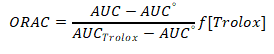 Where AUC is the area under the curve for the sample, AUC° area under the curve for the control, AUCTrolox area under the curve for Trolox, f is the dilution factor for the extracts.