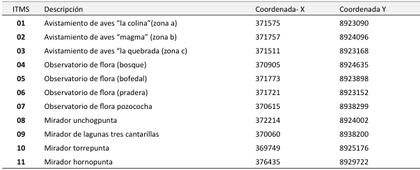 También se elaboraron mapas de las áreas prioritarias de intervención, destacando espacios con diversidad de flora, fauna y escenarios paisajísticos relevantes como lagunas, ruinas, observatorios históricos, bosques, bofedales y miradores. También se crearon mapas de los puntos donde se colocarán letreros de identificación, murales informativos, una estación biológica y una oficina de información turística, reflejados en un mapa de la propuesta del Plan de Uso Ecoturístico, protegiendo así al bosque de la tala de árboles y actividades de caza o captura de aves.