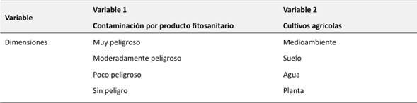 Para la recolección de datos, se aplicó un cuestionario adaptado por el autor, el cual incluyó cuatro dimensiones: muy peligroso, moderadamente peligroso, poco peligroso y sin peligro, denominado Cuestionario A. Contaminación por producto fitosanitario. Este instrumento constó de 21 ítems, valorados en una escala de 1 a 4. Asimismo, se empleó otro cuestionario adaptado por el autor, orientado a evaluar cultivos agrícolas, el cual consideró cuatro dimensiones: medioambiente, suelo, agua y planta, denominado Cuestionario B. Este segundo instrumento incluyó 20 ítems y fue estructurado con una escala tipo Likert de cinco opciones de respuesta: nunca, casi nunca, regular, casi siempre y siempre. Tras la aplicación de los instrumentos, los datos fueron codificados y organizados en una matriz para su posterior análisis.