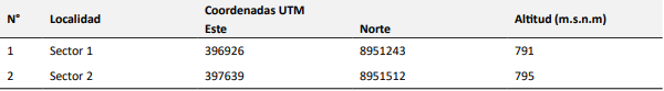 Tabla 1. Ubicación geográfica de las localidades del distrito Mariano Dámaso Beraún