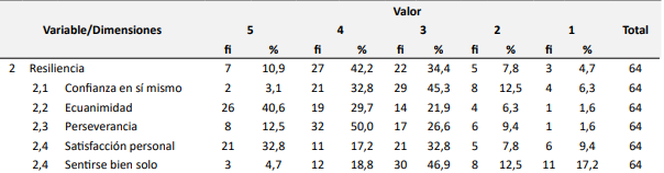 La variable resiliencia se evaluó en función a cinco dimensiones: