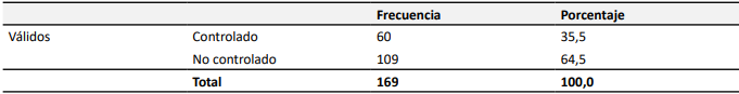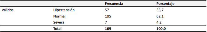 Los resultados indican que una proporción significativa de los participantes presenta hipertensión arterial, siendo un porcentaje considerable de ellos clasificados dentro del nivel más severo. Esta información es relevante para mejorar la salud cardiovascular y la calidad de vida de estos pacientes.