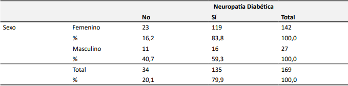 Por otro lado, la menor proporción de hombres con neuropatía indica que podrían existir diferencias en la presentación clínica o en la búsqueda de atención médica. Estos hallazgos resaltan la necesidad de enfoques de tratamiento diferenciados y específicos para cada sexo, así como la importancia de un seguimiento más riguroso en mujeres diabéticas para prevenir y manejar complicaciones como la neuropatía.