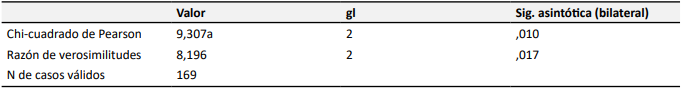 En la tabla 6 refleja que el valor de Chi-cuadrado de Pearson es 9.307 con 2 grados de libertad (gl) y un valor de significancia asintótica de 0.010, esto sugiere que hay una asociación estadísticamente significativa entre las variables analizadas, ya que el valor p es menor que el nivel de significancia comúnmente utilizado de 0.05 mientras la razón de verosimilitudes es 8.196 también con 2 grados de libertad y un valor p de 0.017. Estos resultados indican que existe una asociación significativa al 90% de confianza entre el dolor y el género de los adultos con diabetes.
