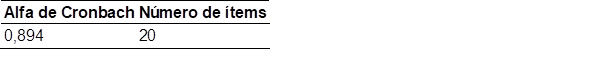 Se utilizó como instrumento un cuestionario de preguntas abiertas, estructurado en escala de Likert. El cuestionario estuvo compuesto por 20 ítems, y fue sometido a un proceso de validación en dos etapas. Primero, se validó el constructo a través del juicio de expertos; luego, se aplicó una prueba piloto para evaluar la fiabilidad mediante el coeficiente alfa de Cronbach, obteniéndose los resultados que se presentan en la Tabla 1.