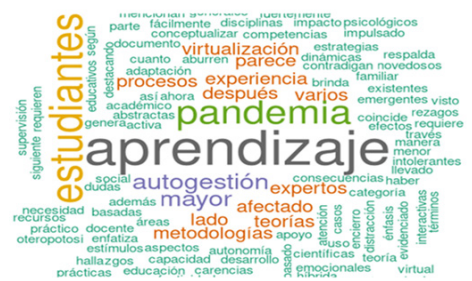 En la Figura 1, se presenta de forma visual la capacidad de identificar rápidamente los conceptos clave relacionados con el aprendizaje, brindando una visión general de los temas más relevantes en este campo. La nube de palabras se destaca como una herramienta eficaz para resumir información de manera concisa y atractiva, lo que facilita la comprensión y el análisis de conceptos complejos a través de una presentación visualmente impactante. También promueve la participación activa de los estudiantes, estimula la creatividad y ayuda a organizar ideas de manera efectiva en el proceso de enseñanza-aprendizaje.