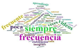Sin embargo, palabras como "poca" y "pocas veces" revelan que algunos docentes usan TIC con menor frecuencia en los procesos didácticos, posiblemente debido a limitaciones en recursos o capacitación. La diversidad de términos refleja enfoques variados en la integración de TIC, desde uso constante hasta esporádico. Esta información es importante porque permite promover el desarrollo de programas o modelos que refuercen la práctica pedagógica desde la perspectiva tecnológica.