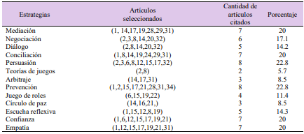 Tabla 3 Estrategias de resolución de conflictos en artículos seleccionados