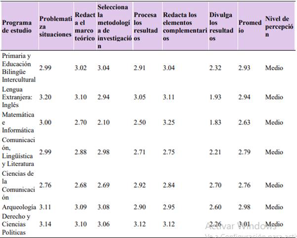 El segundo objetivo específico fue explorar la percepción de los estudiantes sobre el logro del perfil de egreso en investigación en la dimensión procedimental.