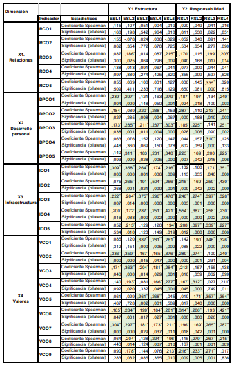 Tabla 2. Análisis de correlación entre las principales variables estudiadas