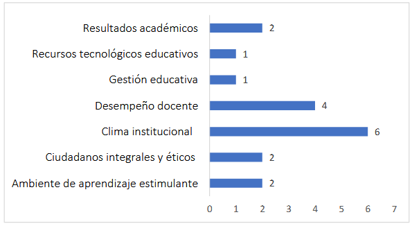 Los principales aportes del liderazgo transformacional en entornos educativos, evidenciando cómo este estilo de liderazgo impacta positivamente en tres dimensiones clave: el clima laboral, la gestión institucional y el desempeño docente. En primer lugar, la Figura 1, muestra que el liderazgo transformacional fomenta un ambiente de trabajo colaborativo y motivador, donde los docentes se sienten valorados y comprometidos, lo que repercute en una mayor satisfacción laboral y en la construcción de relaciones de confianza. En segundo lugar, resalta la mejora en la gestión institucional, promoviendo una cultura organizacional basada en la innovación, la comunicación asertiva y la transparencia, factores que contribuyen a la eficacia y sostenibilidad de las instituciones educativas. Finalmente, la figura señala el impacto en el desempeño docente, destacando cómo este liderazgo estimula la creatividad, la responsabilidad y la participación activa de los docentes, lo que se traduce en mejores resultados de aprendizaje para los estudiantes.