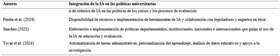 Tabla 1 Integración de la IA en las políticas universitarias